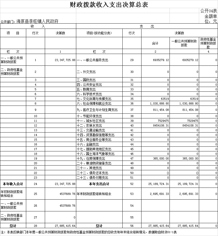 2018年度收入总计25065510.88元,支出总计26907509.31元。与上年相比,收入减少12758760.02、下降50.9%,主要原因是基础设施建设资金减少支出减少6810543.47元,下降25.31%,主要原因是基础设施建设资金减少。