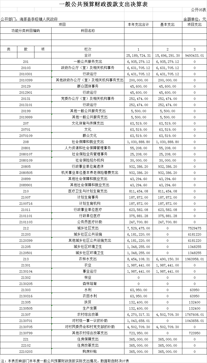 2018年度一般公共预算财政拨款支出25189724.31元,主要用于以下方面:一般公共服务(类)支出6935279.12元,占27.54%;教育(类)支出0元,占0%;科学技术(类)支出0元,占0%;文化体育与传媒(类)支出63519元,占0.26%;社会保障和就业(类)支出1030888.8元,占4.1%;医疗卫生与计划生育支出811454.08元,占3.23%;城乡社区支出7529475元,占29.9%;农林水(类)支出8454108.36元,占33.54%;住房保障(类)支出365000元,占1.45%。)