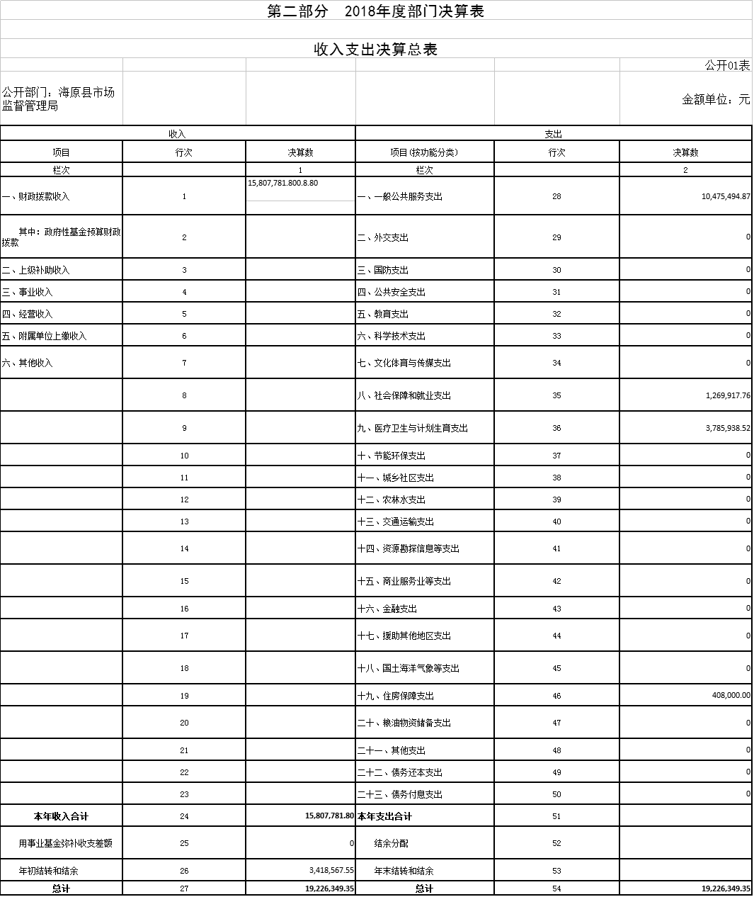 第二部分 2018年度部门决算表
