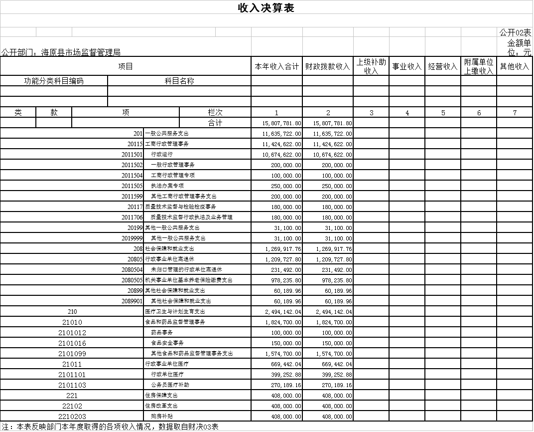 二、收入决算表