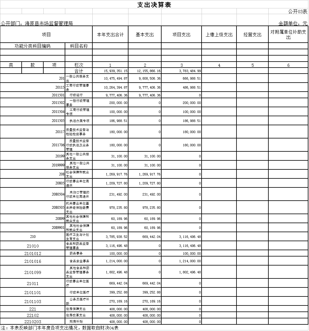 2018年度支出合计15,939,351.15元,其中:基本支出12,155,866.16元,占76.26%;项目支出3,783,484.99元,占23.74%;上缴上级支出0元,占0%;经营支出0元,占0%;对附属单位补助支出0元,占0%。