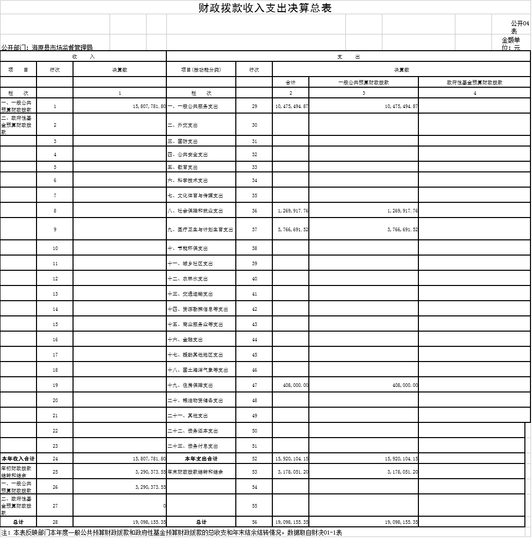 四、财政拨款收入支出决算总表