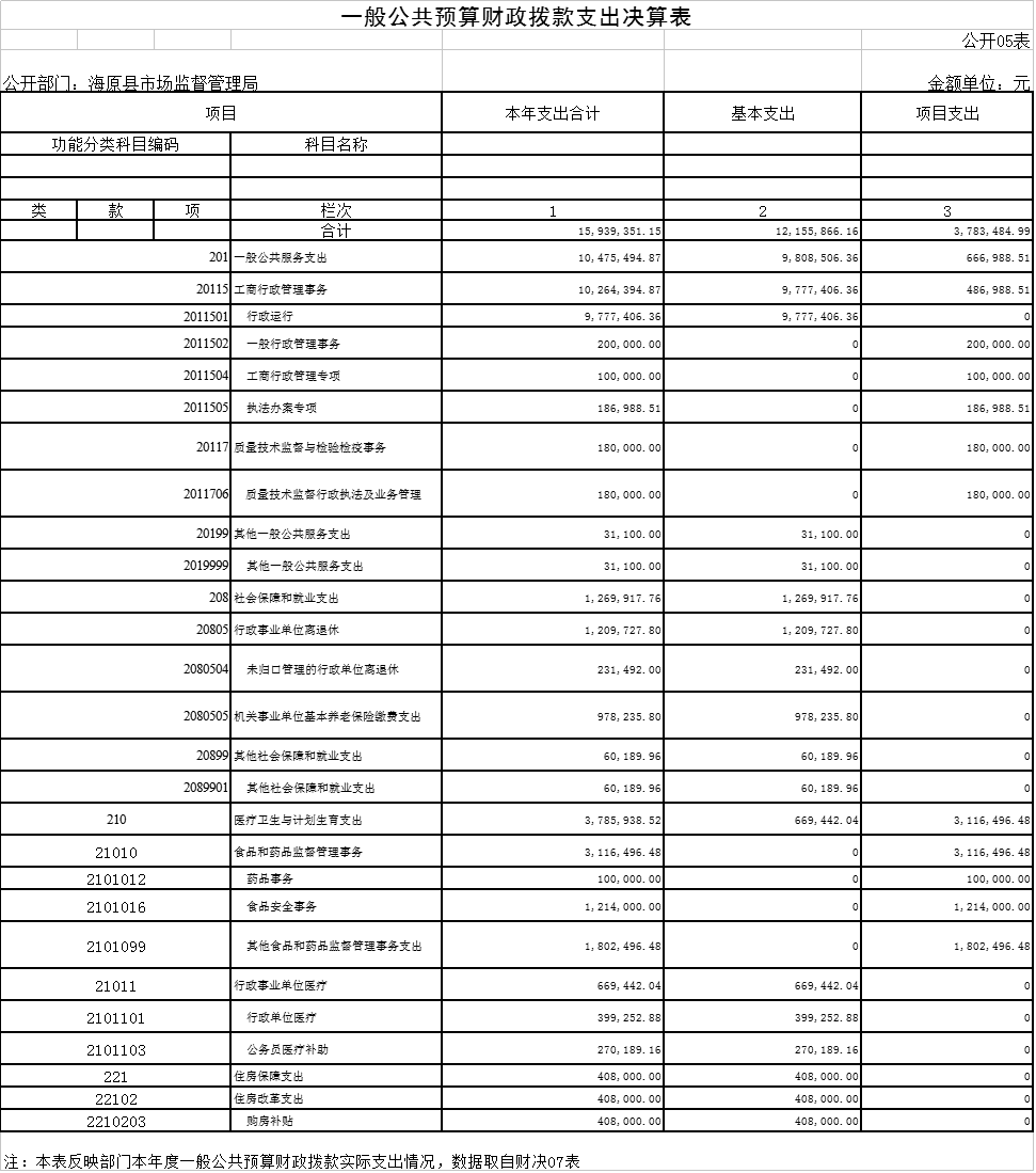 2018年度一般公共预算财政拨款支出年初预算为15,068,983.03元,支出决算为15,939,351.15元,完成年初预算的105.78%。其中: