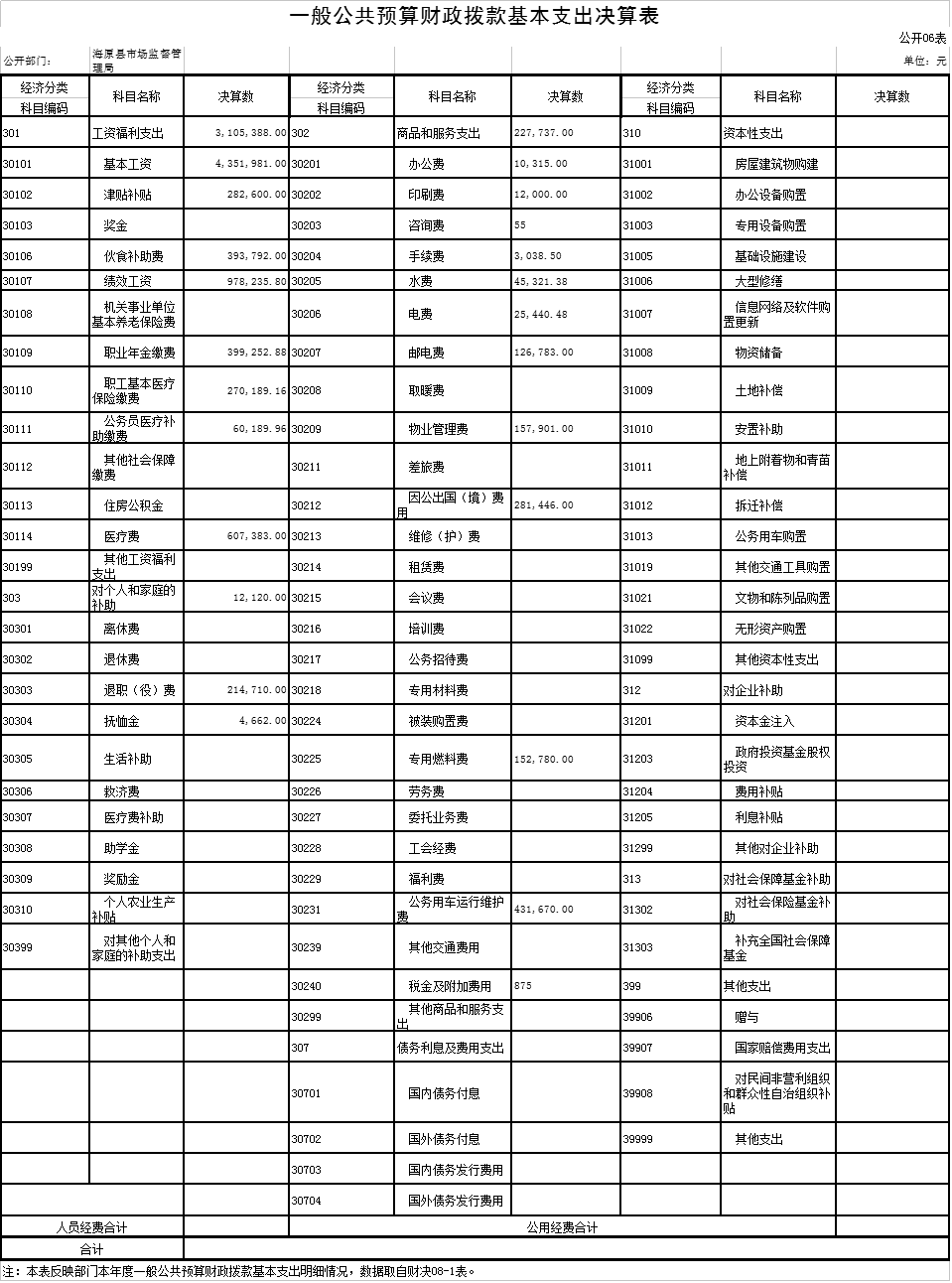 六、一般公共预算财政拨款基本支出决算表