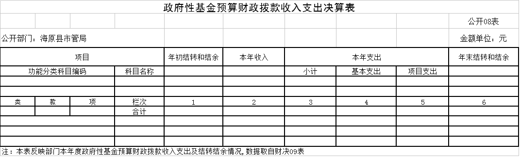八、政府性基金预算财政拨款收入支出决算表