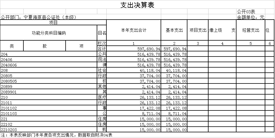 1.公共安全(类)司法(款) 律师公证管理(项)。年初预算为413,389.45元,支出决算为377,634.86元,完成年初预算的91.35%,决算数小于预算数的主要原因是:2018年度职工工资普调一级部分单位漏发,未列入当年支出,所以决算数小于预算数。