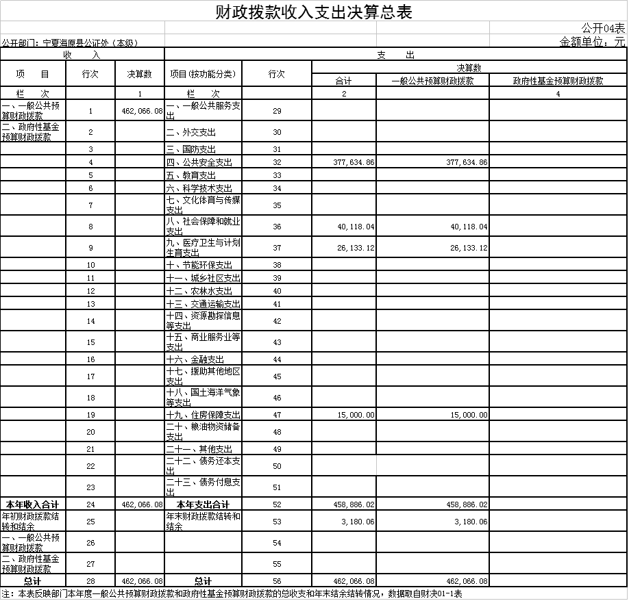 四、财政拨款收入支出决算总表