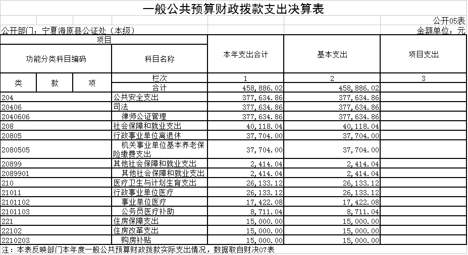 五、一般公共预算财政拨款支出决算表
