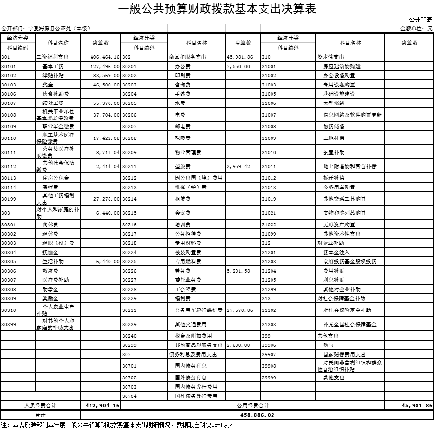 2018年度一般公共预算财政拨款基本支出458,886.02元,其中:人员经费412,904.16元,公用经费45,981.86元。支出具体情况如下: