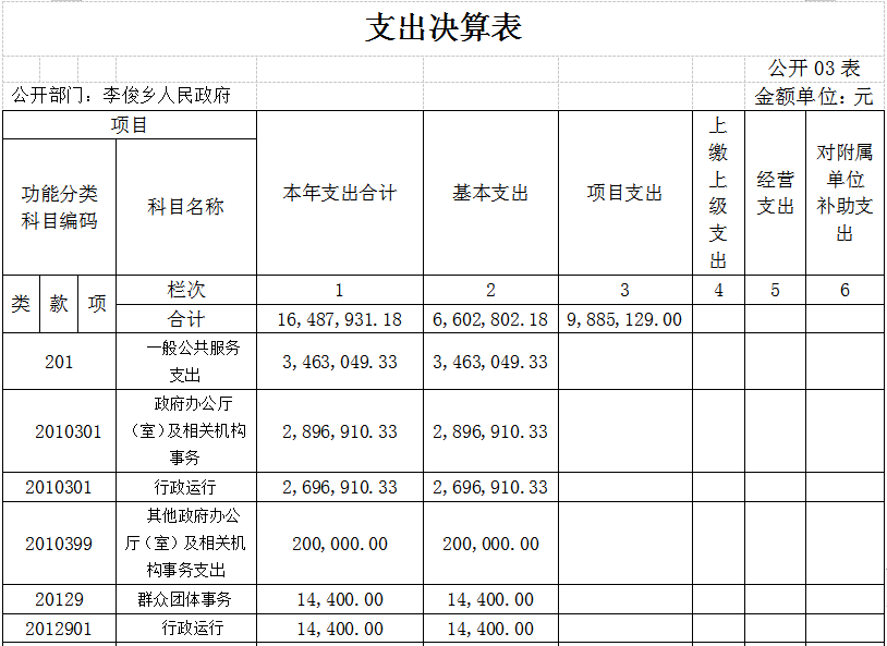 2018年度支出合计16487931.18元,其中:基本支出6602802.18元,占40%;项目支出9885129元,占60%;上缴上级支出0元,占0%;经营支出0元,占0%;对附属单位补助支出0元,占0%。