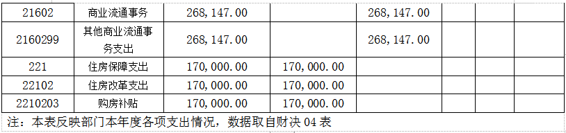 19、商业服务业等支出(类)商业流通事务(款)其他商业流通事务支出(项)。年初预算为0元,支出决算为171147元,超年初预算的171147元,决算数大于预算数的主要原因是:2018年县财政追加拨付活畜市场工程增量资金。
