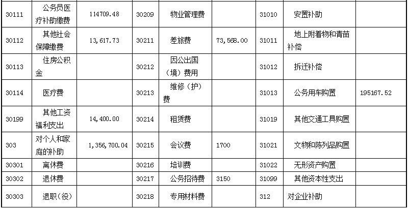 1、一般公共服务(类)政府办公厅(室)及相关机构事务(款)行政运行(项)。年初预算为3382242.95元,支出决算为2696910.33元,完成年初预算的79.7%,决算数小于预算数的主要原因是2018年初预算是按2017年10月份职工人数和工资基数编制的,实际执行时人员与预算时人员不一致。所以决算数小于预算数。