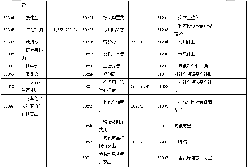 对个人和家庭的补助:反映政府用于对个人和家庭的补助支出。