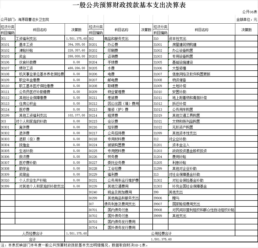 1.工资福利支出1,501,375.60元,超年初预算1,501,375.60元,主要原因是由卫生健康局统一预算;较上年决算数增加547,274.60元,增长57.36%。