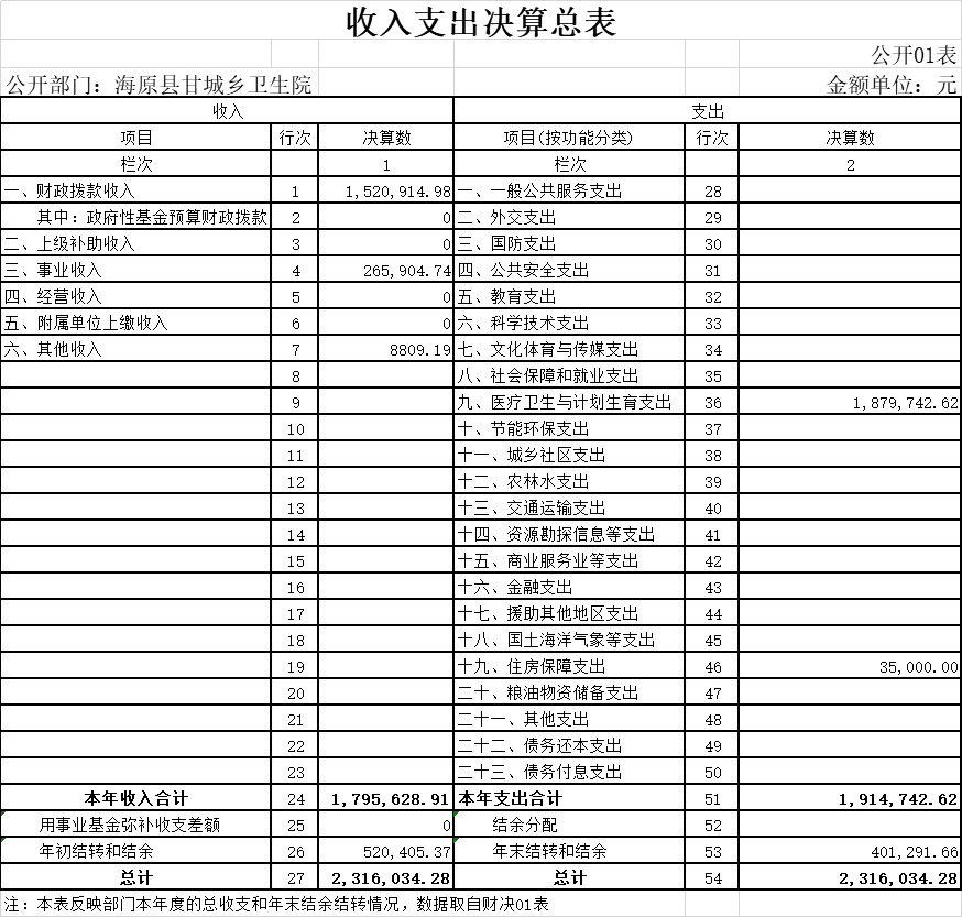 2018年度收入总计1,795,628.91元,支出总计1,914,742.62元。与上年相比,收入增加77105.19元、增长4.49%。支出增加389047.02元,增长25.50%,主要原因是财政拨款增加。