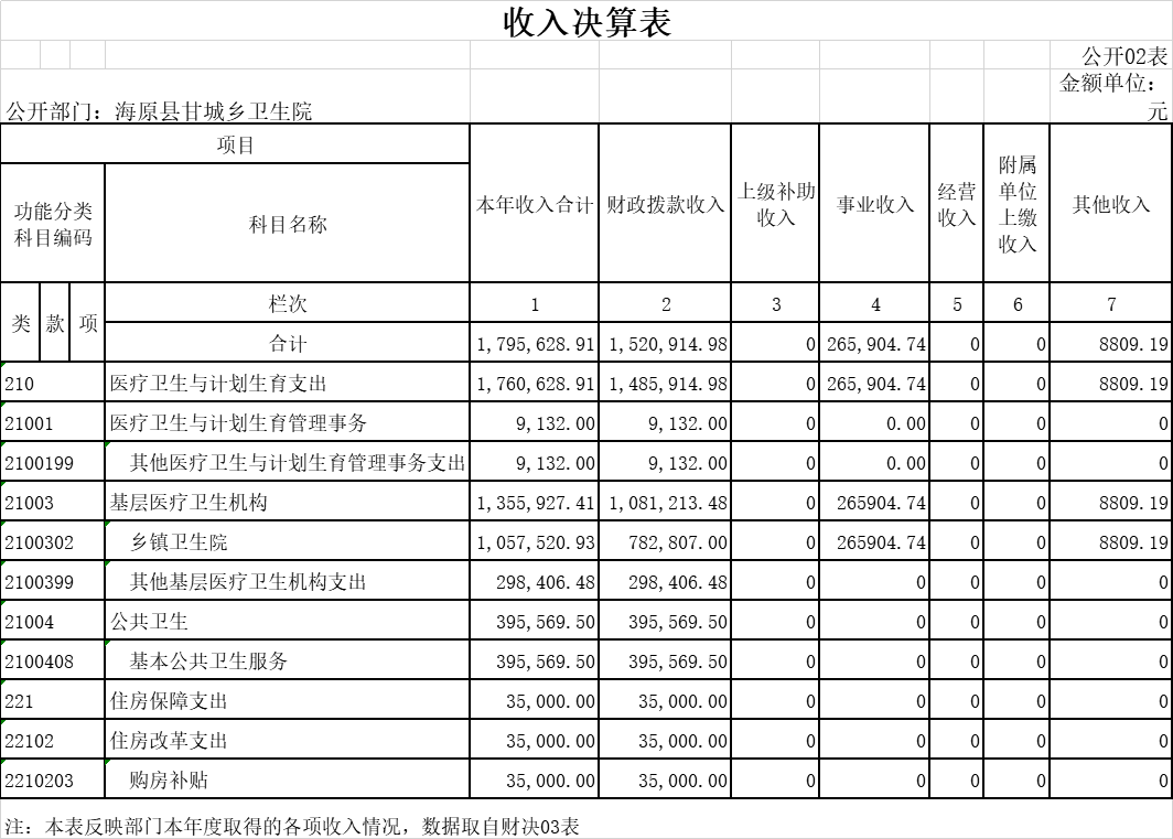2018年度收入合计1,795,628.91元,其中:财政拨款收入1,520,914.98元,占84.70%;上级补助收入0元,占0%;事业收入265,904.74元,占14.80%;经营收入0元,占0%;附属单位上缴收入0元,占0%;其他收入8,809.19元,占0.49%。