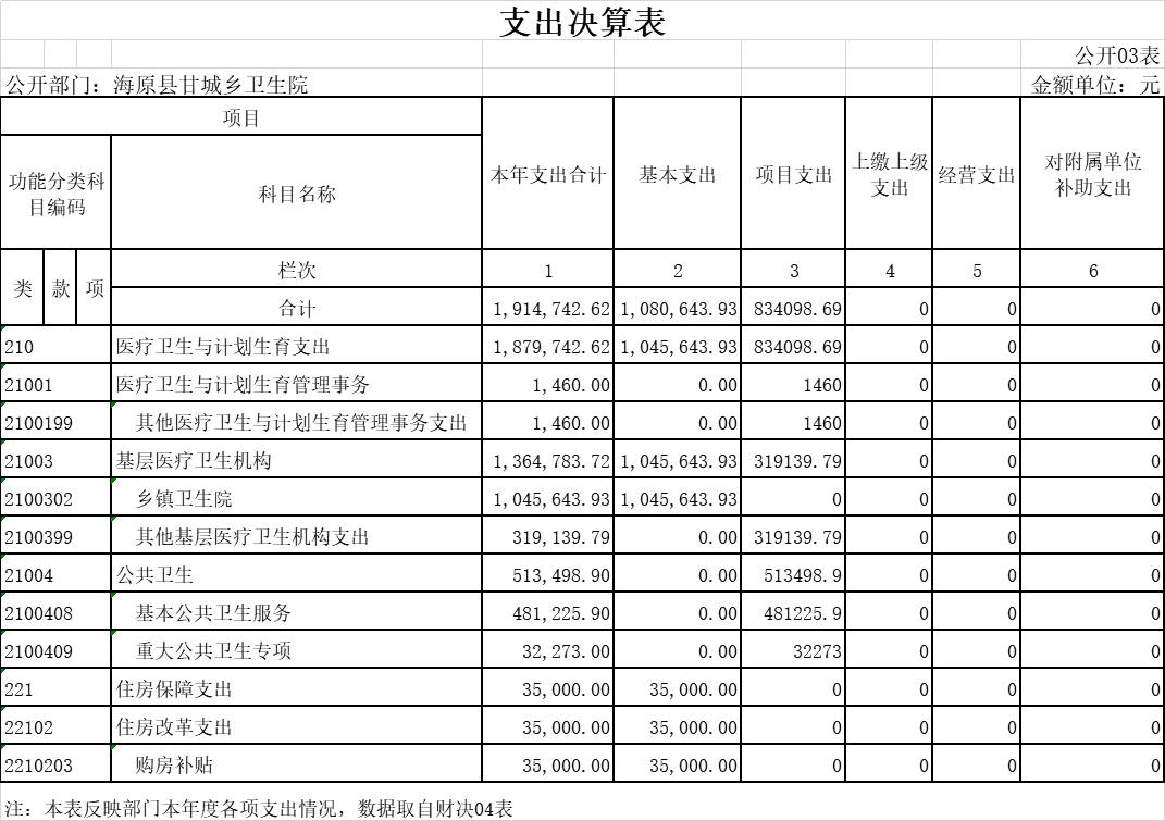 4.医疗卫生与计划生育支出(类)公共卫生(款) 基本公共卫生服务(项)。年初预算为0元,支出决算为481,225.90元,超年初预算481225.90元,决算数大于预算数的主要原因为乡镇卫生院未单独做预算。