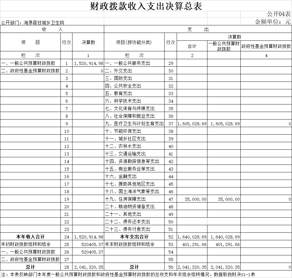 2018年度一般公共预算财政拨款支出年初预算为0元,支出决算为1,640,028.69元,超年初预算1640028.69元,其中:决算数大于预算数原因为乡镇卫生院未单独做预算。
