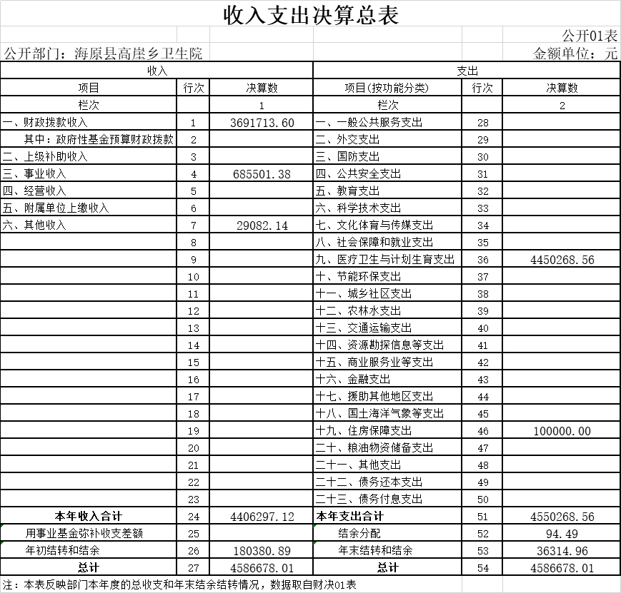 2018年度收入总计4406297.12元,支出总计4550268.56元。与上年相比,收入减少265711.14元,下降6%,主要原因是人员的减少和医疗收入减少;支出减少637461.69元,下降14%,主要原因人员的减少和医疗支出减少。