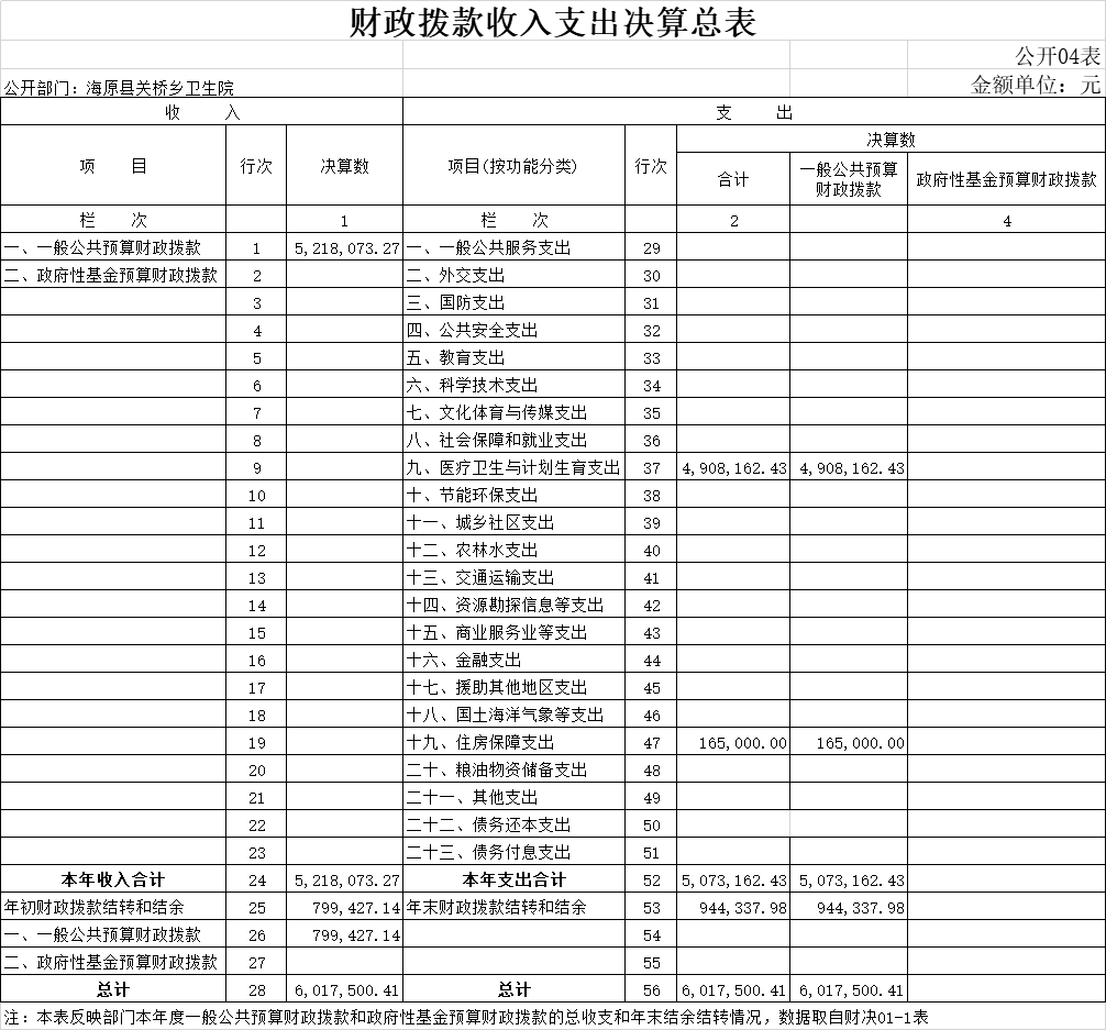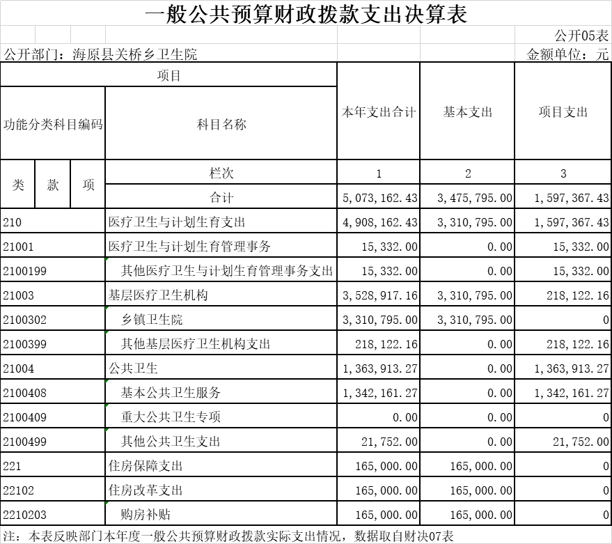 2018年度一般公共预算财政拨款支出年初预算为0.00元,支出决算为5073162.43元,超年初预算5073162.43元,决算数大于预算数的主要原因是乡镇卫生院预算一起做,无法分出本单位预算,其中: