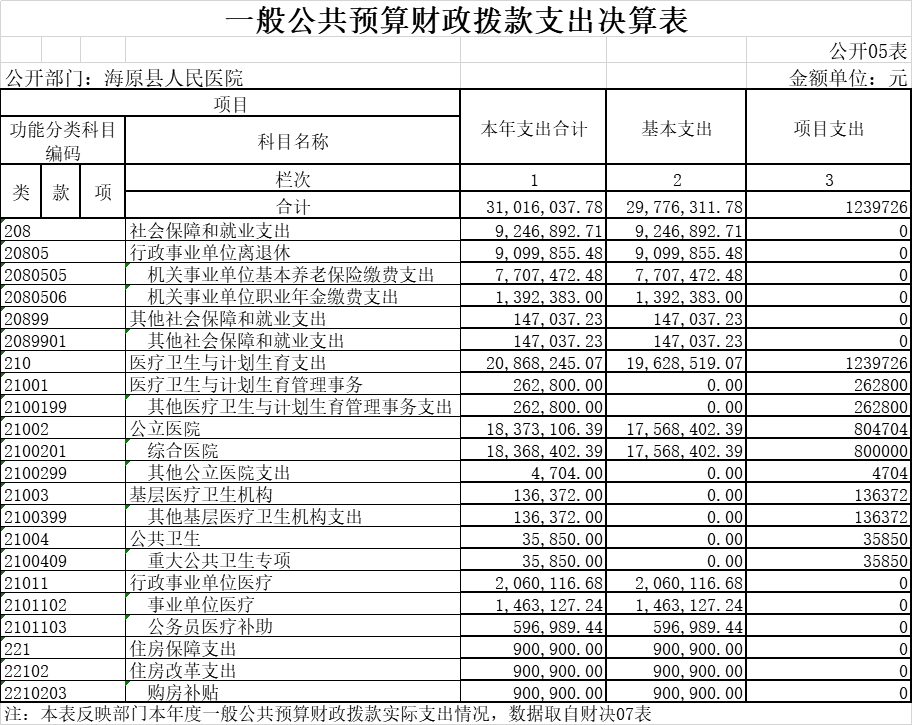 (一)一般公共预算财政拨款支出决算总体情况。2018年度一般公共预算财政拨款支出31,016,037.78元,占本年支出合计的22.23%。与2017年相比,一般公共预算财政拨款支出增加2,564,061.21元,增加7.41%,主要原因是调资增加及公立医院薪酬制度改革绩效工资增加