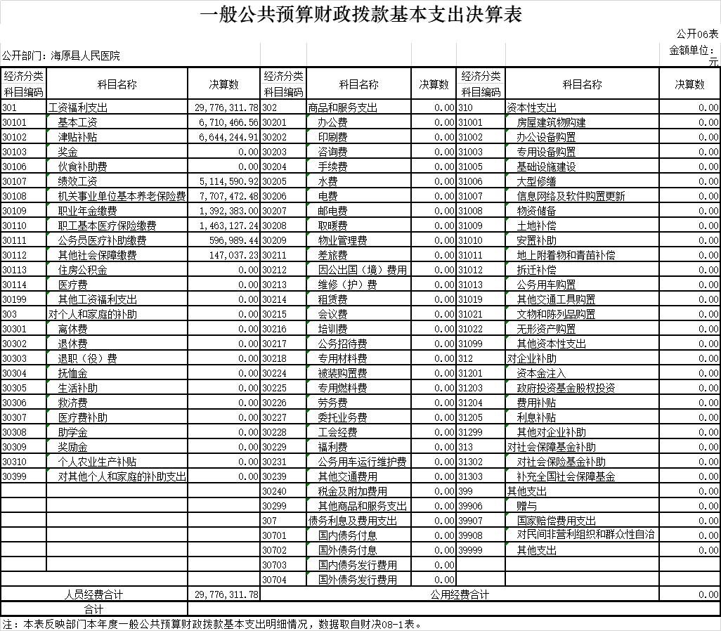 2018年度一般公共预算财政拨款基本支出29,776,311.78元,其中:人员经费29,776,311.78元,公用经费0元。支出具体情况如下: