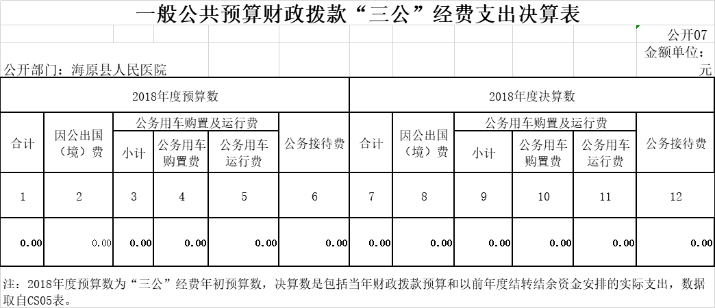 2018年度“三公”经费一般公共预算财政拨款支出决算中,因公出国(境)费支出占0%;公务用车购置及运行费支出占0%;公务接待费支出0占%。具体情况如下:
