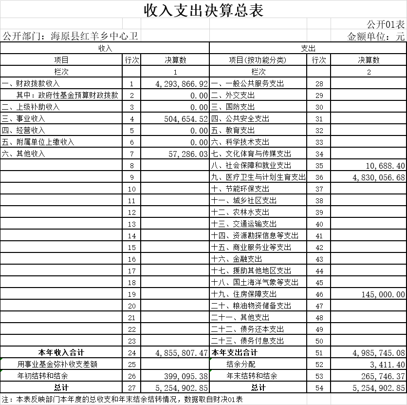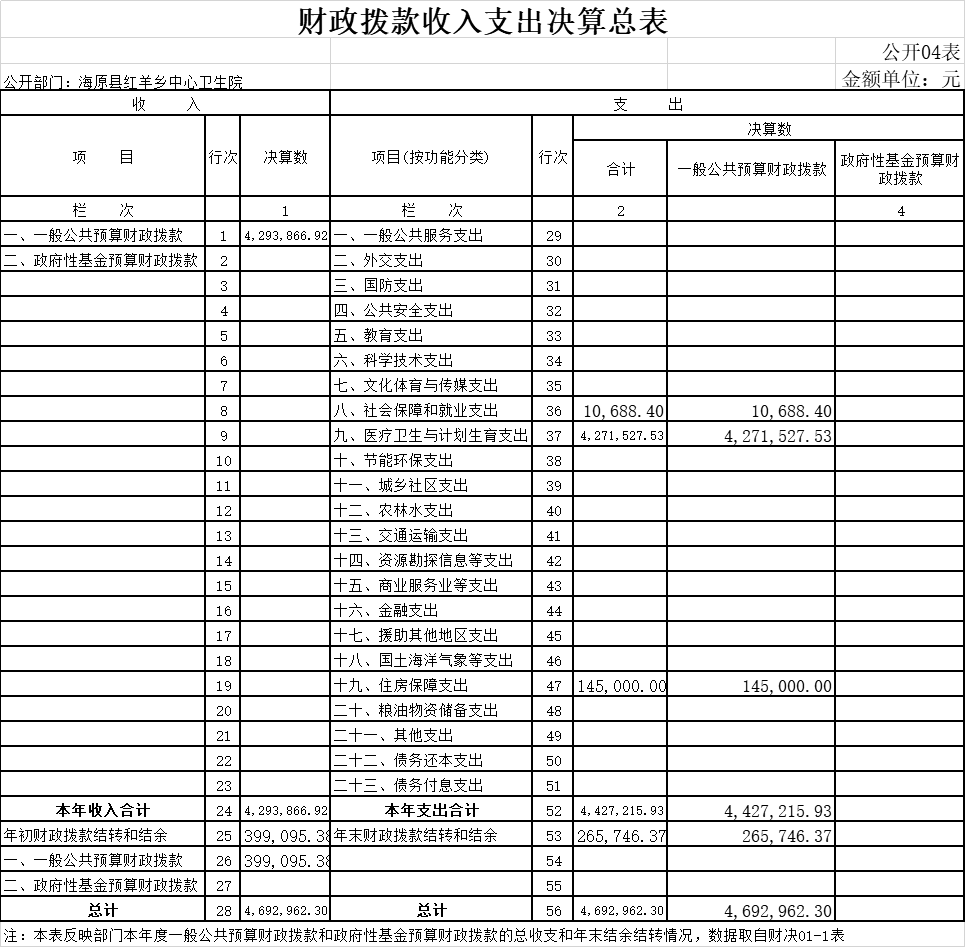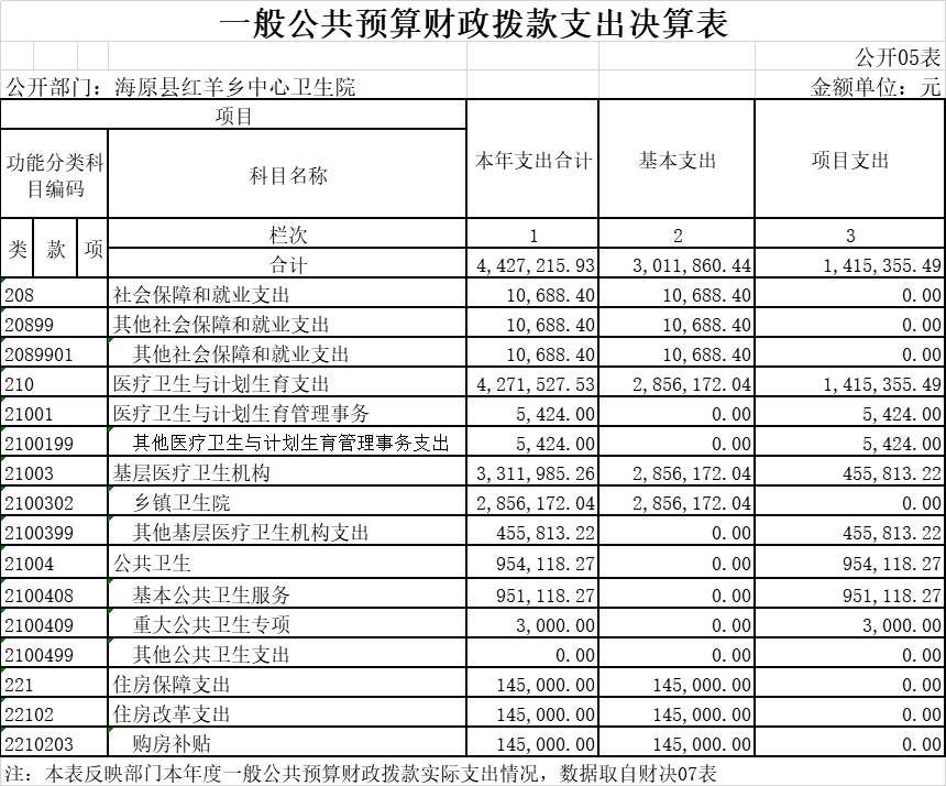 1.2018年度一般公共预算财政拨款支出年初预算为0元,支出决算为4,427,215.93元,完成年初预算的0%,决算数大于预算数的主要原因是乡镇卫生院预算一起做,无法分出本单位预算。