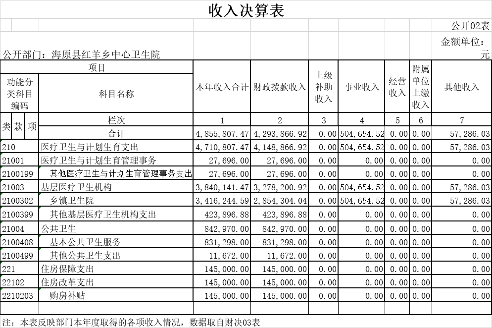 二、收入决算表