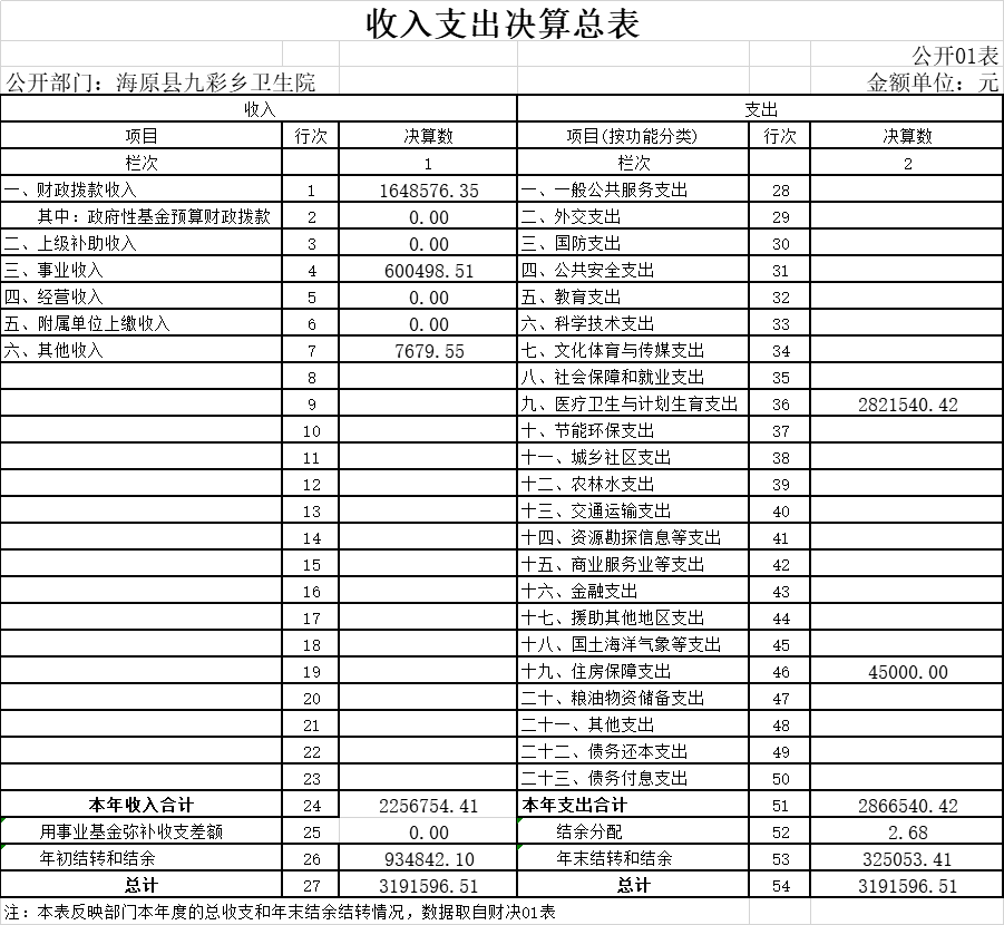 2018年度收入总计2256754.41元,支出总计2866540.42元。与上年相比,收入总计增加50835.86元,增加2.3%,主要原因是公共卫生服务经费增加。支出总计增加899010.81元,增加45.6%,主要原因是公共卫生服务经费增加。