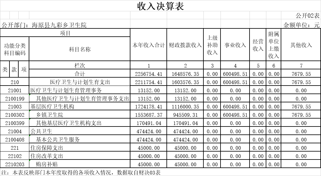 海原县九彩乡卫生院,纳入部门决算编报范围的单位共1个,其中二级预算单位有0个。