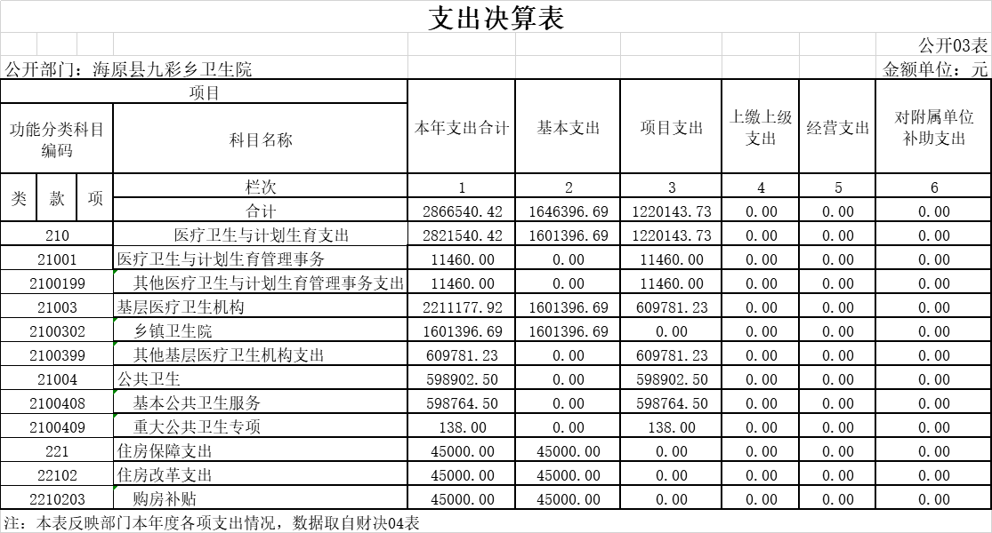 3.医疗卫生与计划生育支出(类)基层医疗卫生机构(款)乡镇卫生院(项)。年初预算为0元,支出决算为993221.31元,超年初预算993221.31元,决算数大于预算数的主要原因乡镇卫生院未单独做预算