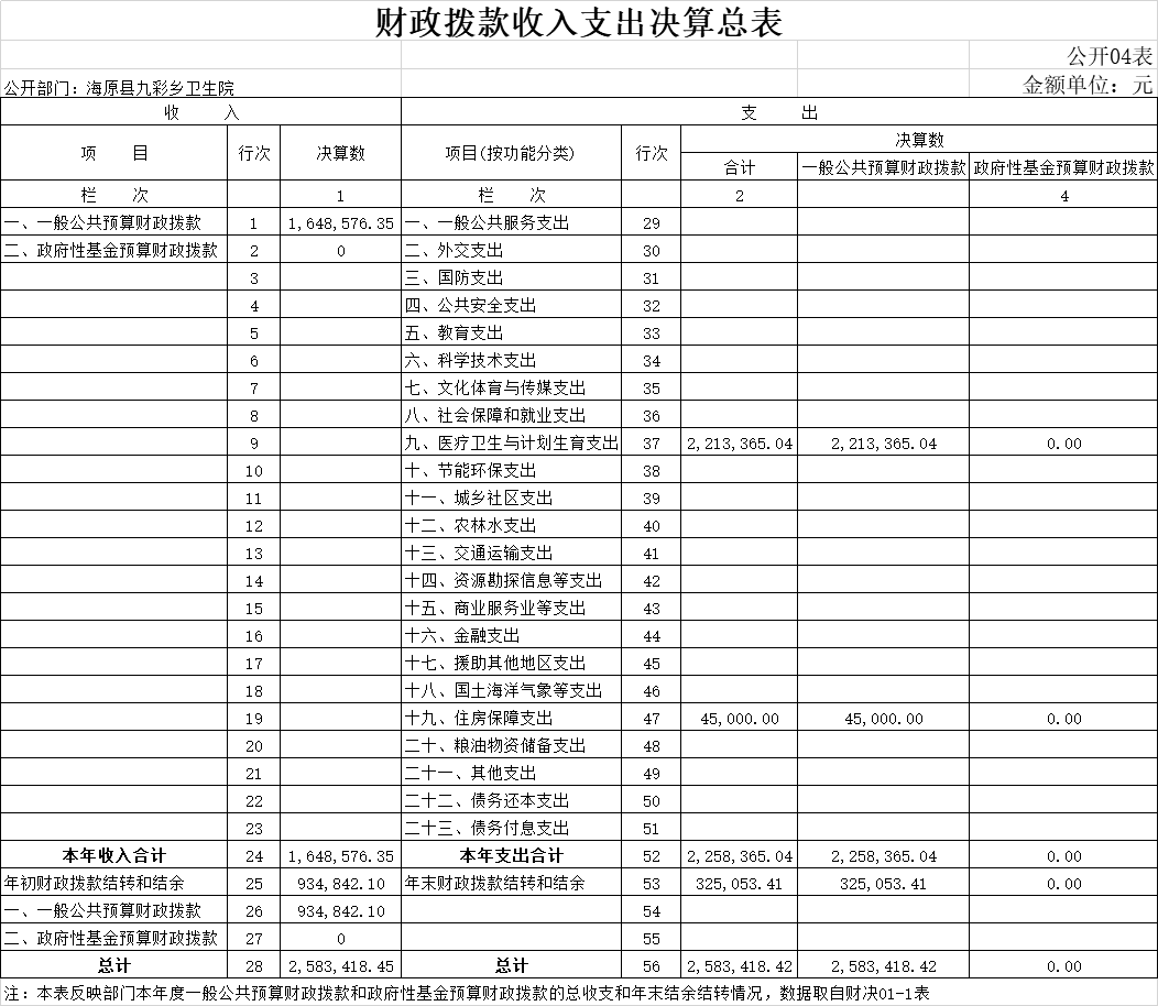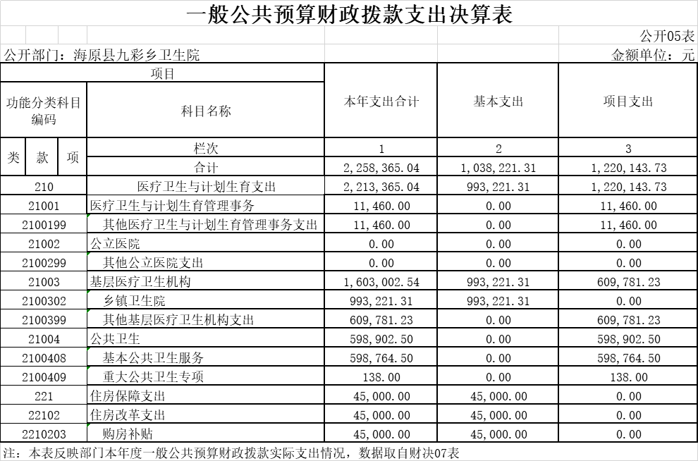 2018年度一般公共预算财政拨款支出年初预算为0元,支出决算为2258365.04元,超年初预算2258365.04元。决算数大于预算数的主要原因:乡镇卫生院预算统一由主管局做。