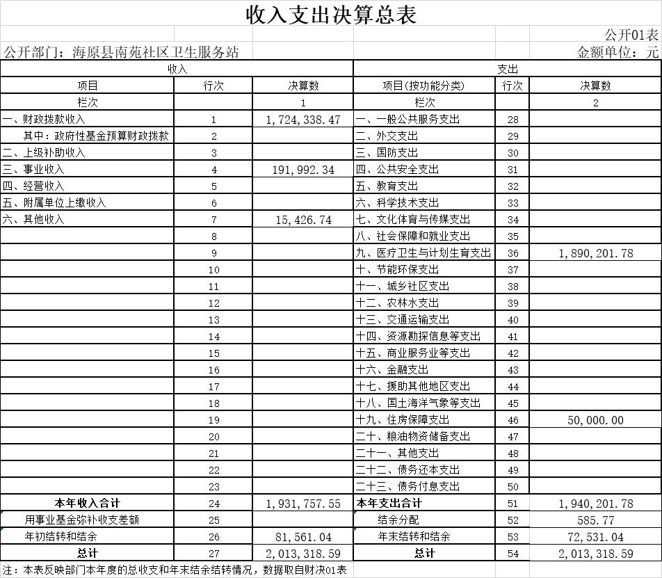2018年度收入总计1,931,757.55元,支出总计1,940,201.78元。与上年相比,收入总计增加了141,373.57元,增长7.9%,主要原因是是人员的增加和基本公共卫生服务经费增长及新业务的开展。支出总计增加了111,702.06元,增长6.1%,主要原因是是人员支出的增加和基本公共卫生服务投入加大。