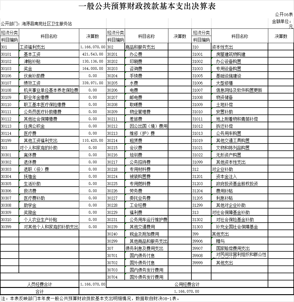 1.工资福利支出1,166,070.00元,超年初预算数1,166,070.00元,增主要原因是由卫生健康局统一预算;较上年决算数增加11,148元,增长1.0%。