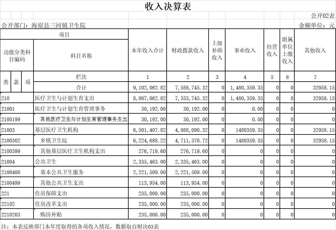 按照部门决算编报要求,海原县三河镇卫生院部门决算包括本部门决算。纳入部门决算编报范围的单位共1个,无二级预算单位。