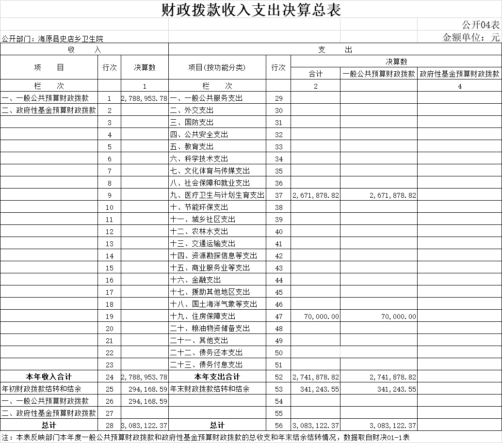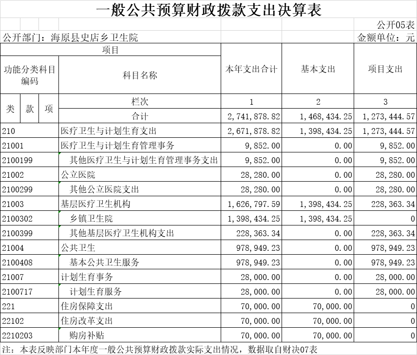 2018年度一般公共预算财政拨款支出年初预算为0元,支出决算为2741878.82元,超年初预算2741878.82元,其中:决算数大于预算数的主要原因是:乡镇卫生院没有分开做预算。