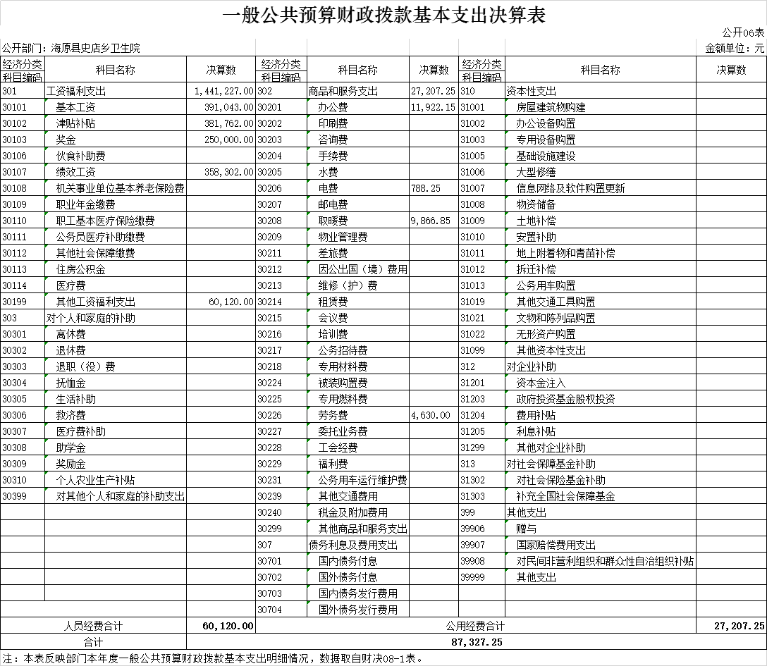1、工资福利支出1441227.00元。超年初预算1441227.00元。主要原因:乡镇卫生院预算统一由主管局做。