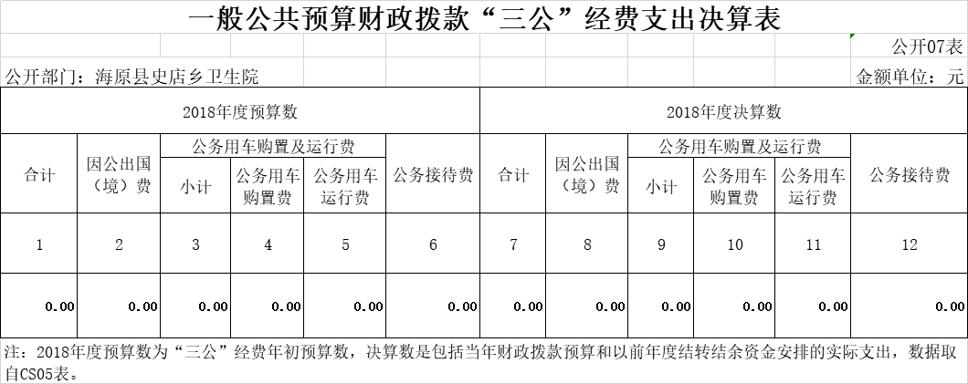 2018年度“三公”经费一般公共预算财政拨款支出年初预算为0元,支出决算为0元,完成年初预算的0%。与上年相比,减少0元,下降0%,决算数等于年初预算数的主要原因是无。