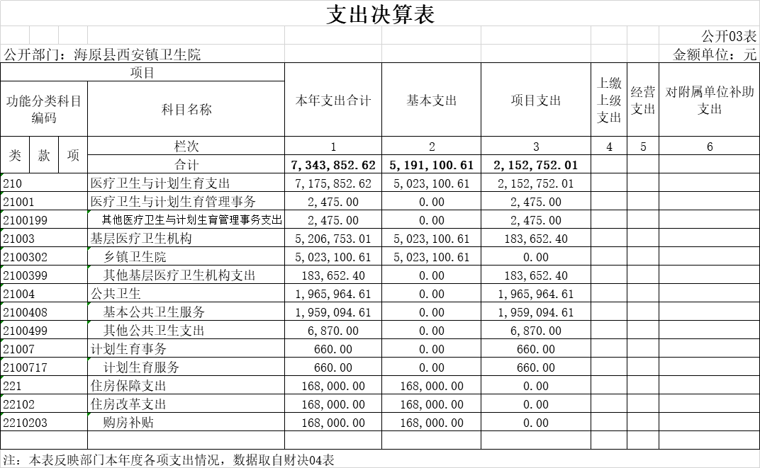 2018年度支出合计7,343,852.62元,其中:基本支出5,191,100.61元,占70.69%;项目支出2,152,752.01元,占29.31%;上缴上级支出0元,占0%;经营支出0元,占0%;对附属单位补助支出0元,占0%。