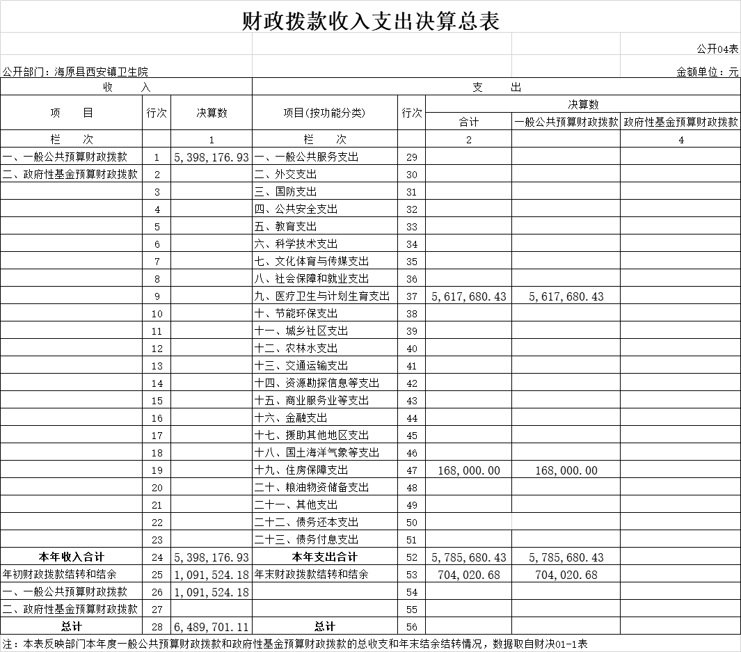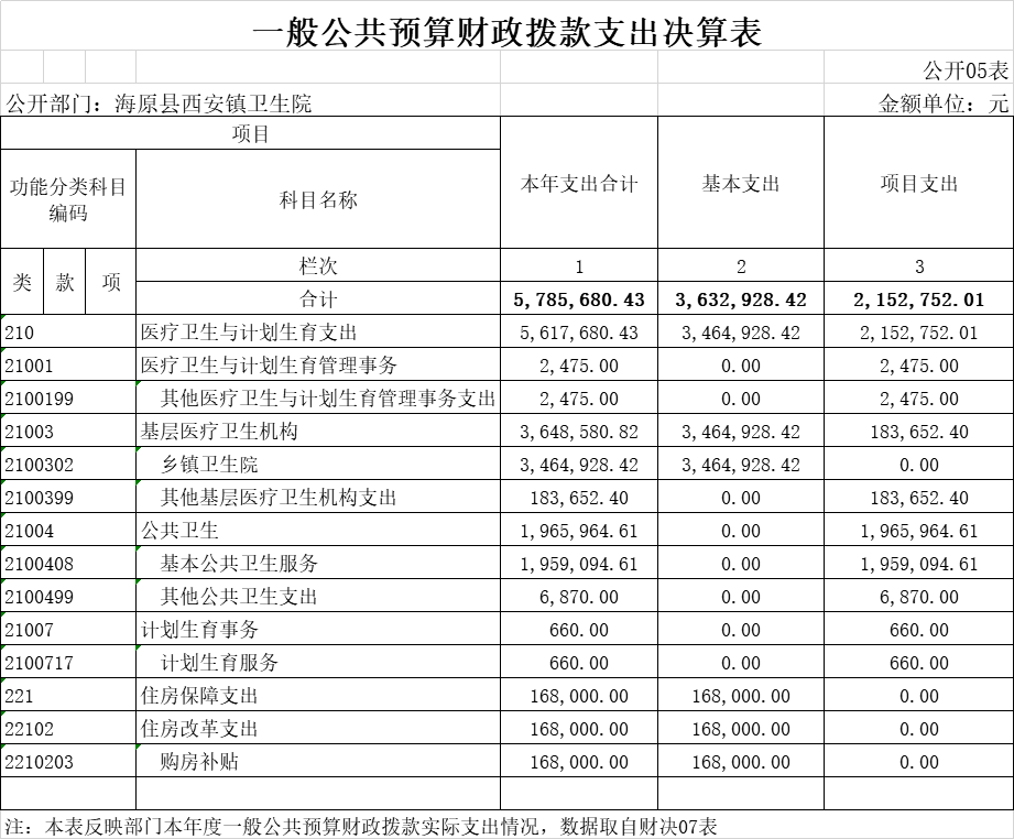 2018年度一般公共预算财政拨款支出年初预算为0元,支出决算为5,785,680.43元,超年初预算5,785,680.43元,决算数大于预算数的主要原因是:乡镇卫生院没有分开做预算。其中: