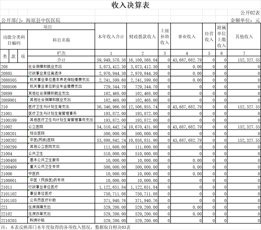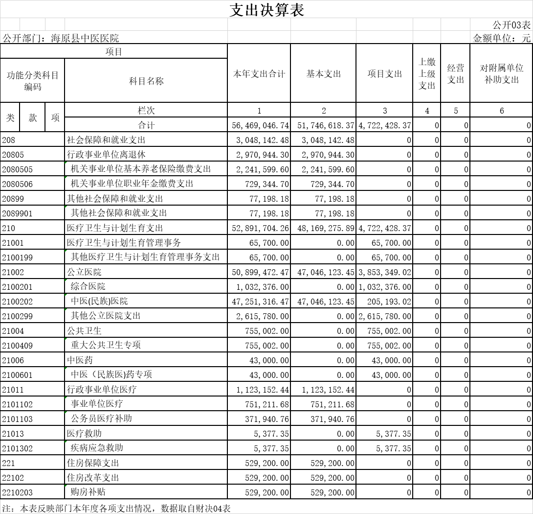 6、医疗卫生与计划生育支出(类)公立医院(款)中医(民族)医院(项)。年初预算9860755.49元,支出决算为10058831.90元,完成年初预算的102%;决算数大于预算数主要原因:财政补助资金增加。
