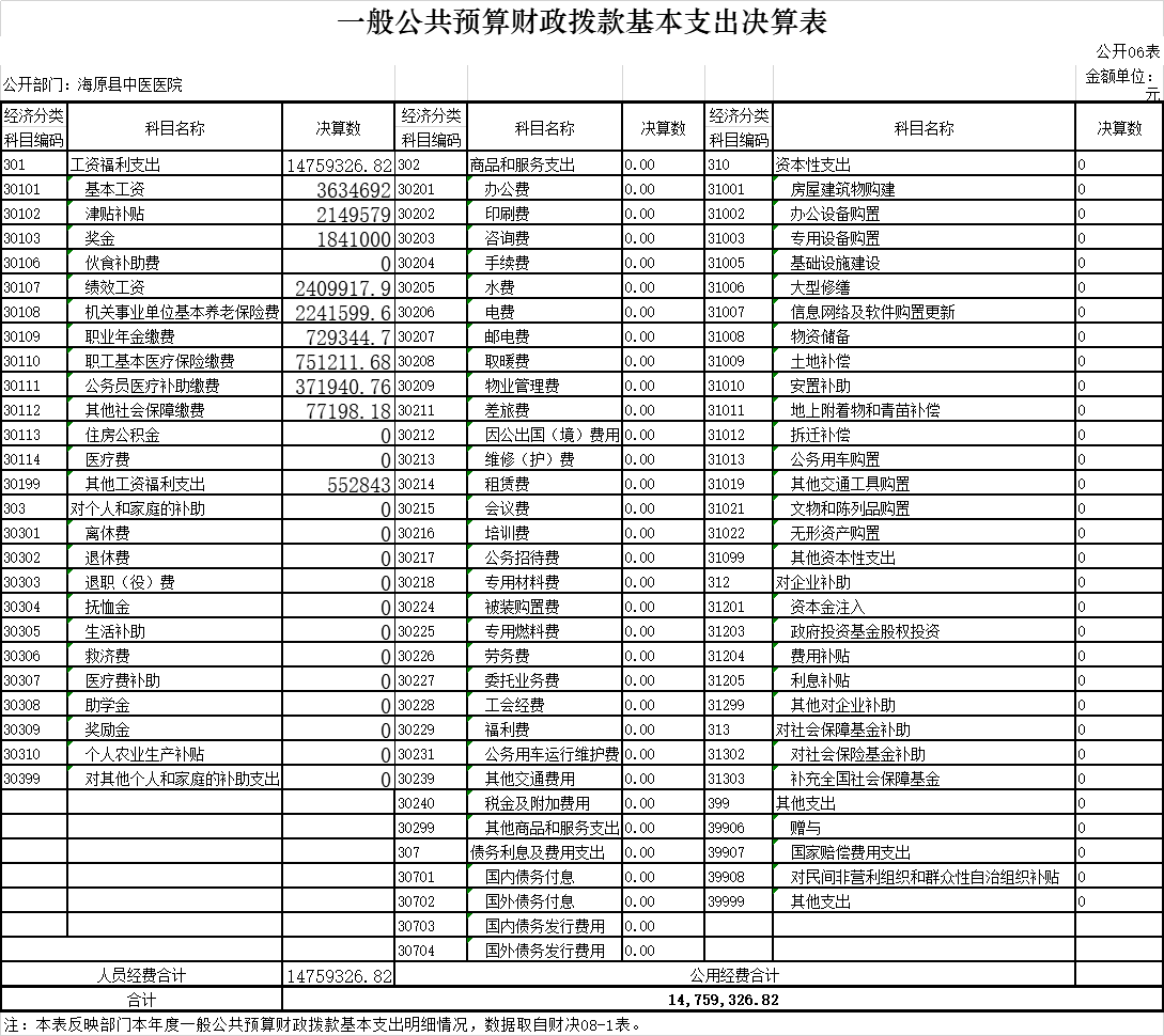 2018年度一般公共预算财政拨款基本支出14,759,326.82元,其中:人员经费14,759,326.82元,公用经费0元。支出具体情况如下: