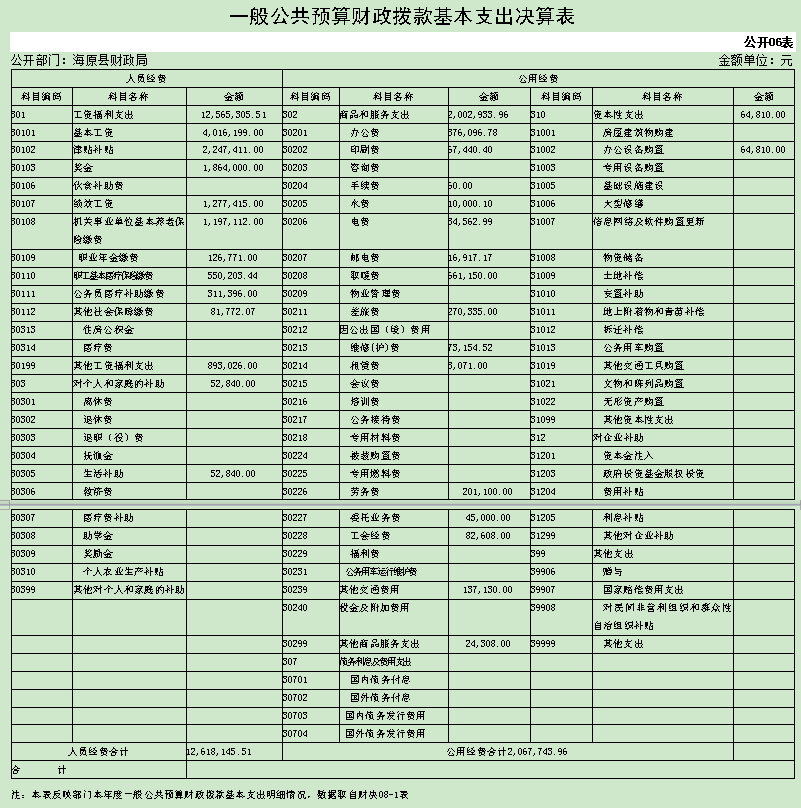 2019年度一般公共预算财政拨款基本支出14,685,889.47元,其中:人员经费12618145.51元,公用经费2,067,743.96元。支出具体情况如下: