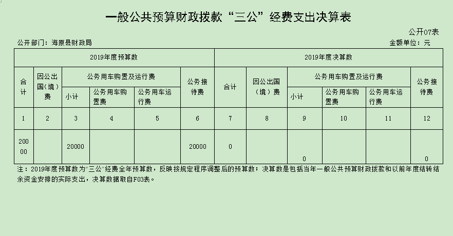 (一)“三公”经费一般公共预算财政拨款支出决算总体情况说明。2019年度“三公”经费一般公共预算财政拨款支出预算为20000元,支出决算为0元,完成预算的0%,2019年度“三公”经费支出决算数小于预算数的主要原因:严格执行八项规定。