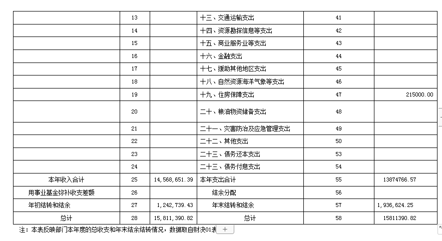 2019年度收入总计14568651.39元,支出总计13874766.57元。与2018年度相比,收、支总计各增加3034492.61元、2098043.01元,增长26.31 、17.82%,主要原因是财政拨款收入增加796148.02元,事业收入增加2171670.67元。
