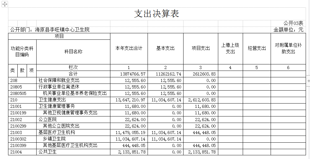 2. 卫生健康支出(类) 卫生健康管理事务(款)其他卫生健康管理事务支出(项)。 年初预算为0元,支出决算为11680.00元,超年初预算的11680.00元,决算数大于预算数的主要原因:本单位是海原县卫生健康局的二级单位,乡镇卫生院预算数为财政统一填报一个数据,本单位没有分出数据。