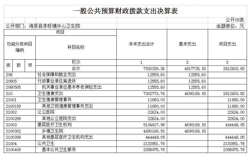 1.2019年度一般公共预算财政拨款支出年初预算为0元,支出决算为7530329.36元,超年初预算的7530329.36元。决算数大于预算数的主要原因:本单位是海原县卫生健康局的二级单位,乡镇卫生院预算数为财政统一填报一个数据,本单位没有分出数据。