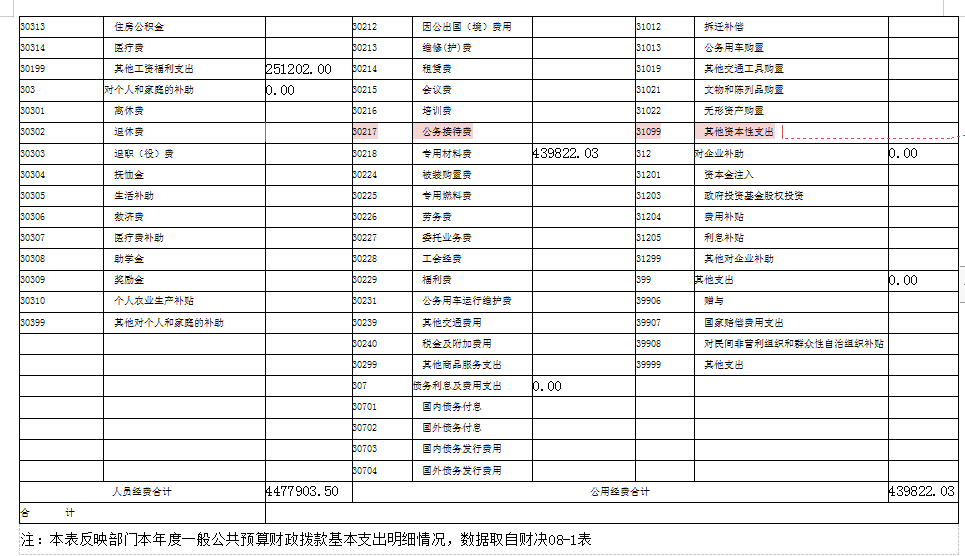 2019年度一般公共预算财政拨款基本支出4917725.53元,其中:人员经费4477903.50元,公用经费439822.03元。支出具体情况如下: