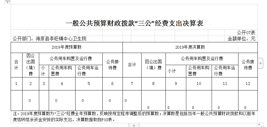 (二)“三公”经费一般公共预算财政拨款支出决算具体情况说明。2019年度“三公”经费一般公共预算财政拨款支出决算中,因公出国(境)费支出决算0元,占0%;公务用车购置及运行费支出决0元,占0%;公务接待费支出决算0元,占0%。具体情况如下: